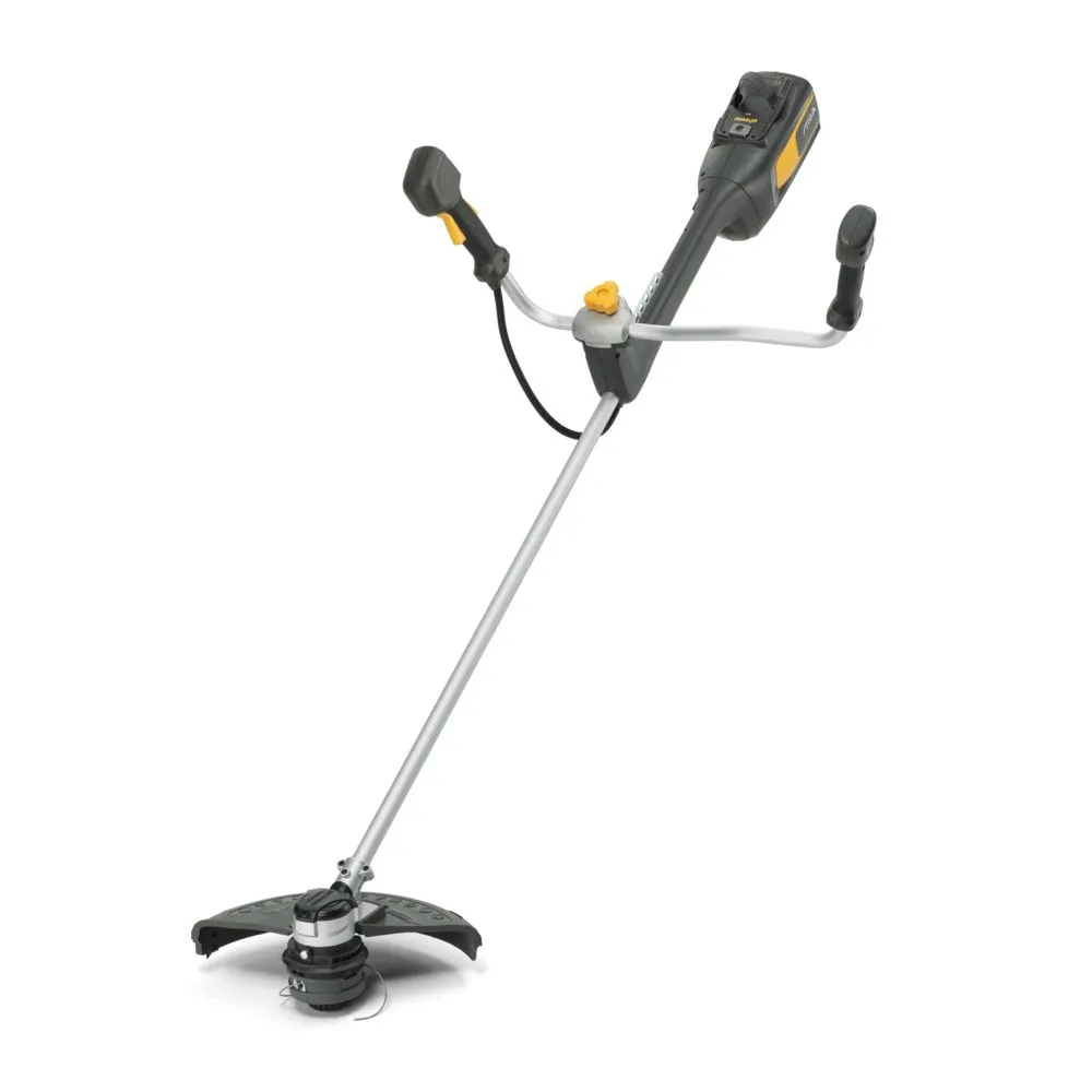 Kennzeichnend für die nur 6 kg schwere Akku-Motorsense BC 700e B von STIGA ist der Doppelgriff. Topist auch der 48-V-Akku (4 Ah), der mit nur einer Akkuladung bis zu 60 Minuten unterbrechungsloses Arbeiten bietet. Die leichtgewichtige und robust gebaute Motorsense mit clever ergonomischen Funktionen erledigt die schwierigsten Schneidarbeiten mit Bravour. Unebenes Gelände, Steilhänge oder tiefe Gräben? Mit fünf verschiedenen Positionen für den Haltegurthaken ermöglicht dir diese Motorsense Balance und Kontrolle, wo immer du auch arbeitest. Zur zusätzlichen Verstärkung ist die Sense mit einem legierten leichten, biege- und vibrationsfesten Schaft ausgestattet. Verwende zur Geschwindigkeitseinstellung das Keypad am Griff mit LED-Display und den Auslöserschalter. Der mit Tap&Go Doppelfaden ausgestattete Trimmerkopf beginnt bei 6000 U/min. Das Vier-Zahn-Messer bietet 6500 U/min für härtere Schneidaufgaben. Mit einer Schnittbreite von 38 cm und hohem Drehmoment schneidet diese Sense mit Leichtigkeit durch dichtes, hohes und selbst nasses Gras.